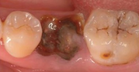 신경치료 중 치료는 마지막까지 하지 않고 방치하게 되면 치아는 신경이 없는 상태로 방치되는 것이기 때문에 까맣게 변색이 됩니다.