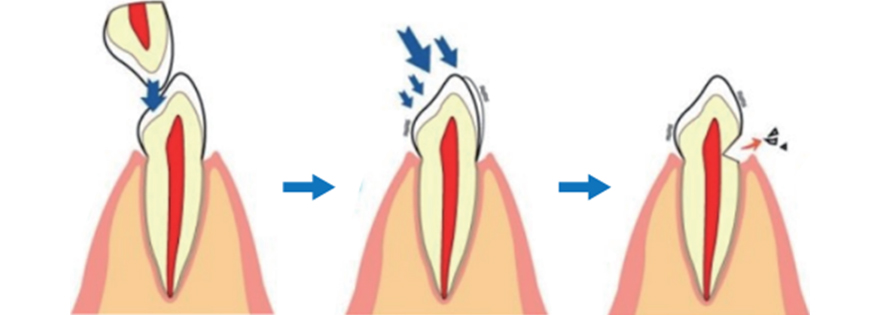 사람들은 각자 다른 교합압을 가지고 있으며 정상보다 큰 힘으로 음식을 씹고 지속적으로 치아가 맞물리게 되면 치경부가 파이고 파절되는 상황에 이르게 됩니다.