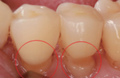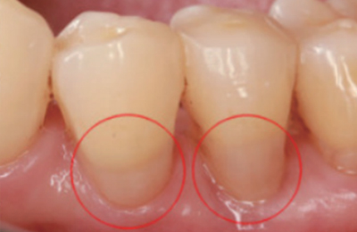 마모되고 패이고 파절된 치경부의 면은 거칠어지게 됩니다.