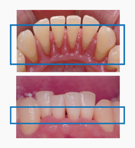 치석과 염증 등으로 잇몸과 잇몸뼈의 공간이 4mm 가량이나 벌어져있던 치료 전과 비교했을 때 치료 후에는 잇몸과 잇몸뼈의 공간이 2~3mm를 유지할 수 있게 됩니다.