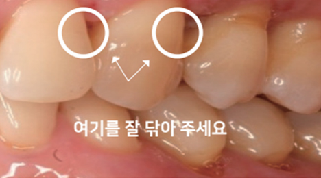 꼼꼼하지 못한 양치질은 치간에 음식물 등 세균을 남기고, 그 세균들은 치태가 되어 구강 내에서 충치를 유발합니다.