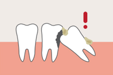 칫솔질이 잘 닿지 않는 사랑니와 옆 치간에는 음식물 등 세균이 잔류하게 됩니다. 잔류 음식물이나 세균 등은 결국 치태가 되고 치태는 치석이 되어 사랑니뿐만 아니라 사랑니 근처 치아에까지 충치와 치주 질환을 유발하게 됩니다.