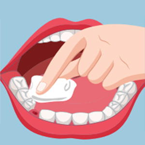 발치한 빈 공간 바로 위에 솜을 접어 올리고 입을 다물어 솜을 압박합니다.