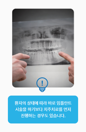 구강상태를 검사하고 방사선 촬영 후 환자의 상태가 임플란트를 하기에 적당한 상태인지를 진단하는 과정입니다.