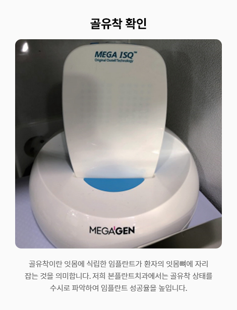 저희 심다치과에서는 골유착의 성공을 평가하는 장비를 이용하여 수시로 임플란트 성공평가를 시행합니다.