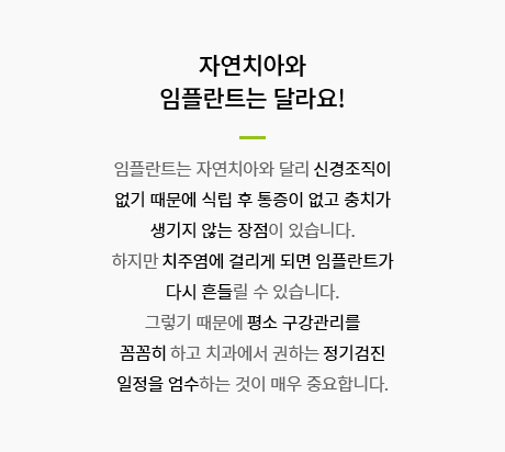 “어느 임플란트가 좋다, 안좋다” 라기보다 환자분들 개개인의 상태에 꼭 맞는 임플란트를 사용하는 것이 올바른 선택입니다.